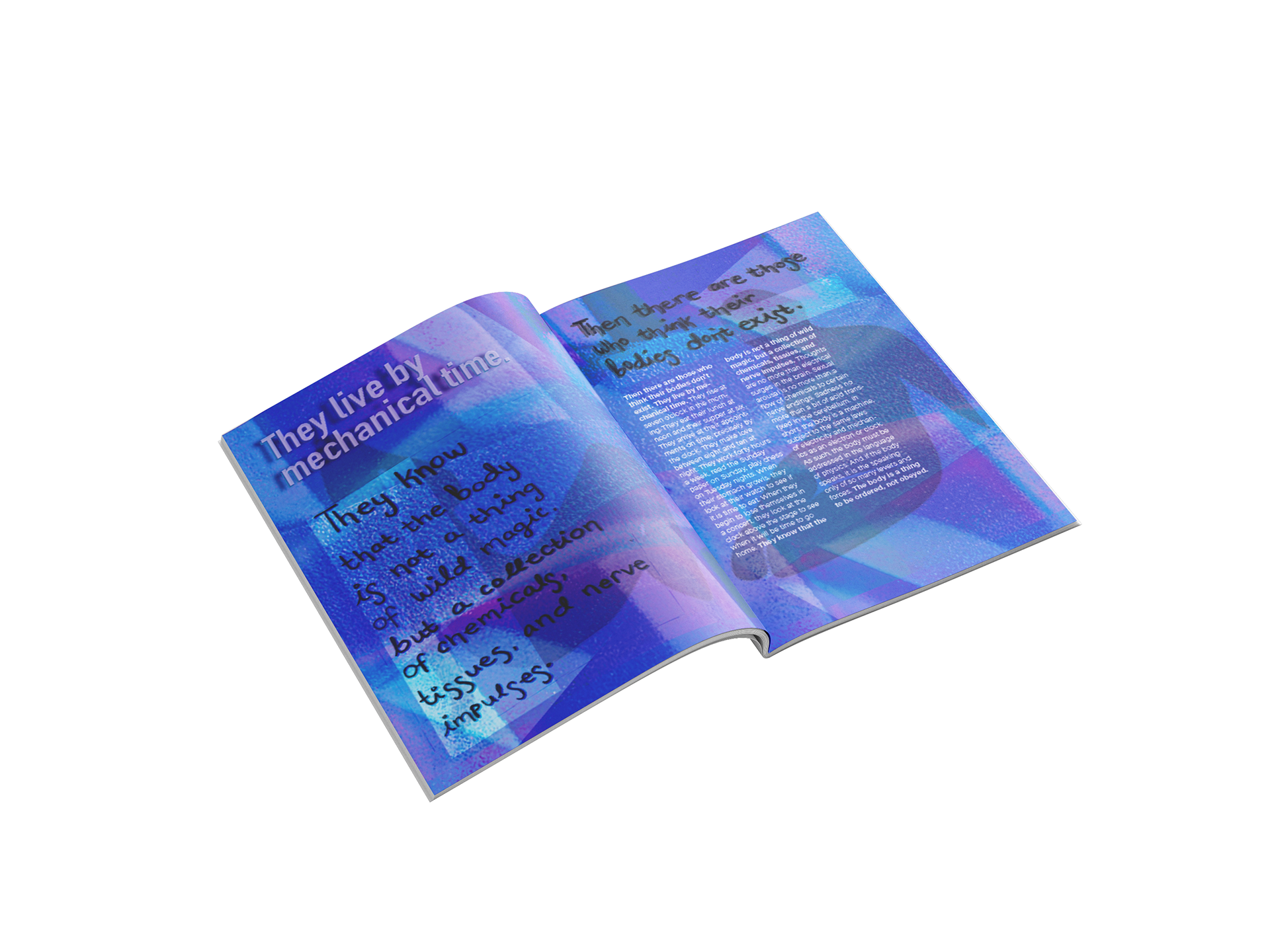 A zine based on one of Einstein's Dreams (1905) fictional collage stories, about two times, mechanical time and body time.