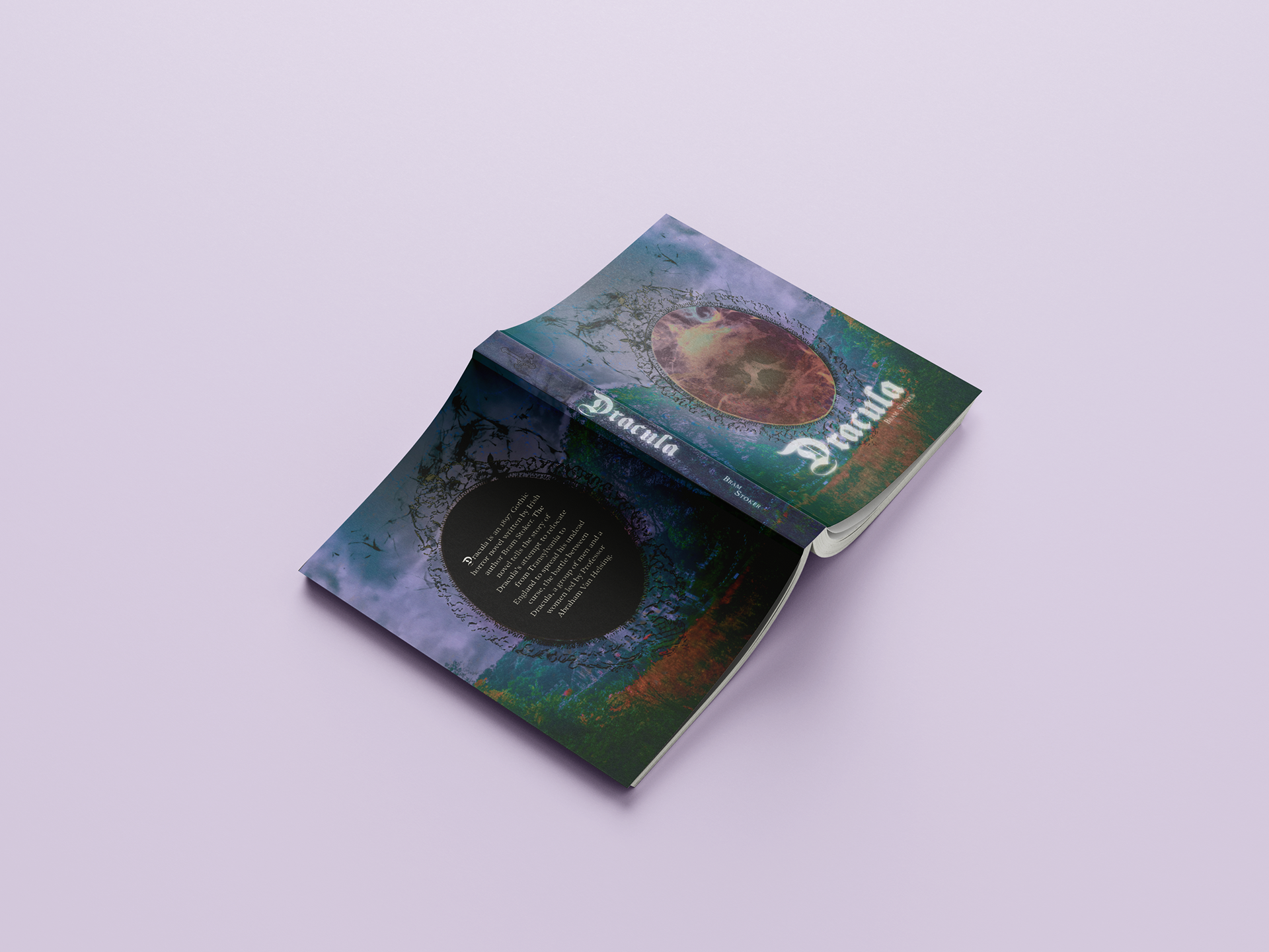 A complete redesign of the original 1992 Bram Stoker book, "Dracula". I used Illustrator, InDesign, and Photoshop to bring this design to life creating a romantic, dark vintage book cover as well as a medieval typeface to complete the theme.
